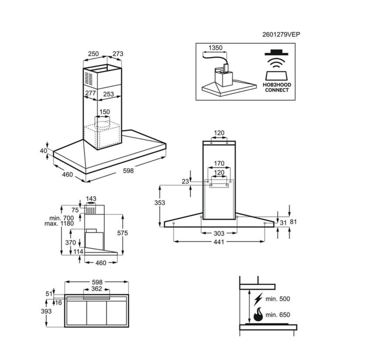 Productinformatie "AEG DKB6671HB 6000 wandschouwdampkap - 60cm"