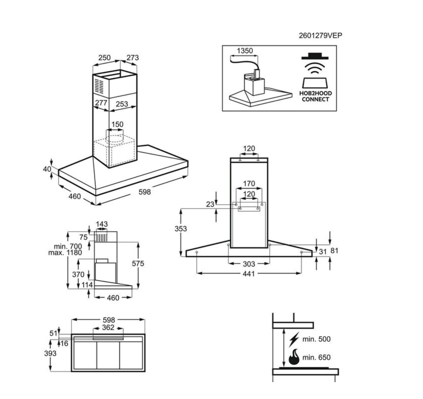 Productinformatie "AEG DKB6671HM 6000 wandschouwdampkap - 60cm"