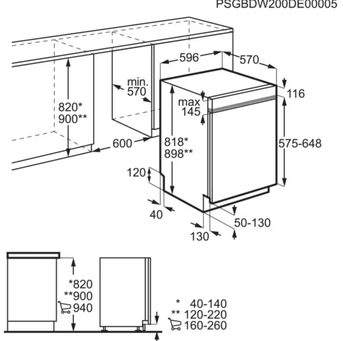 Vaatwasprogramma's: AUTO Sense, Eco, Extra Silent, Machine Care, Quick