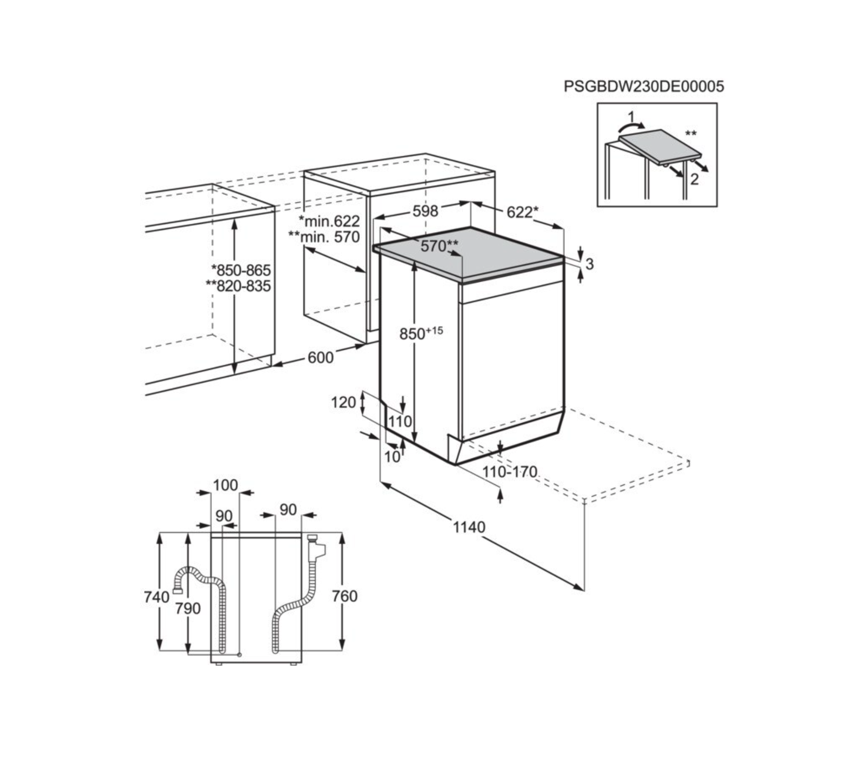 Vaatwasprogramma's: 160 min., 60 min., 90 min., Auto, Eco, Machine Care,