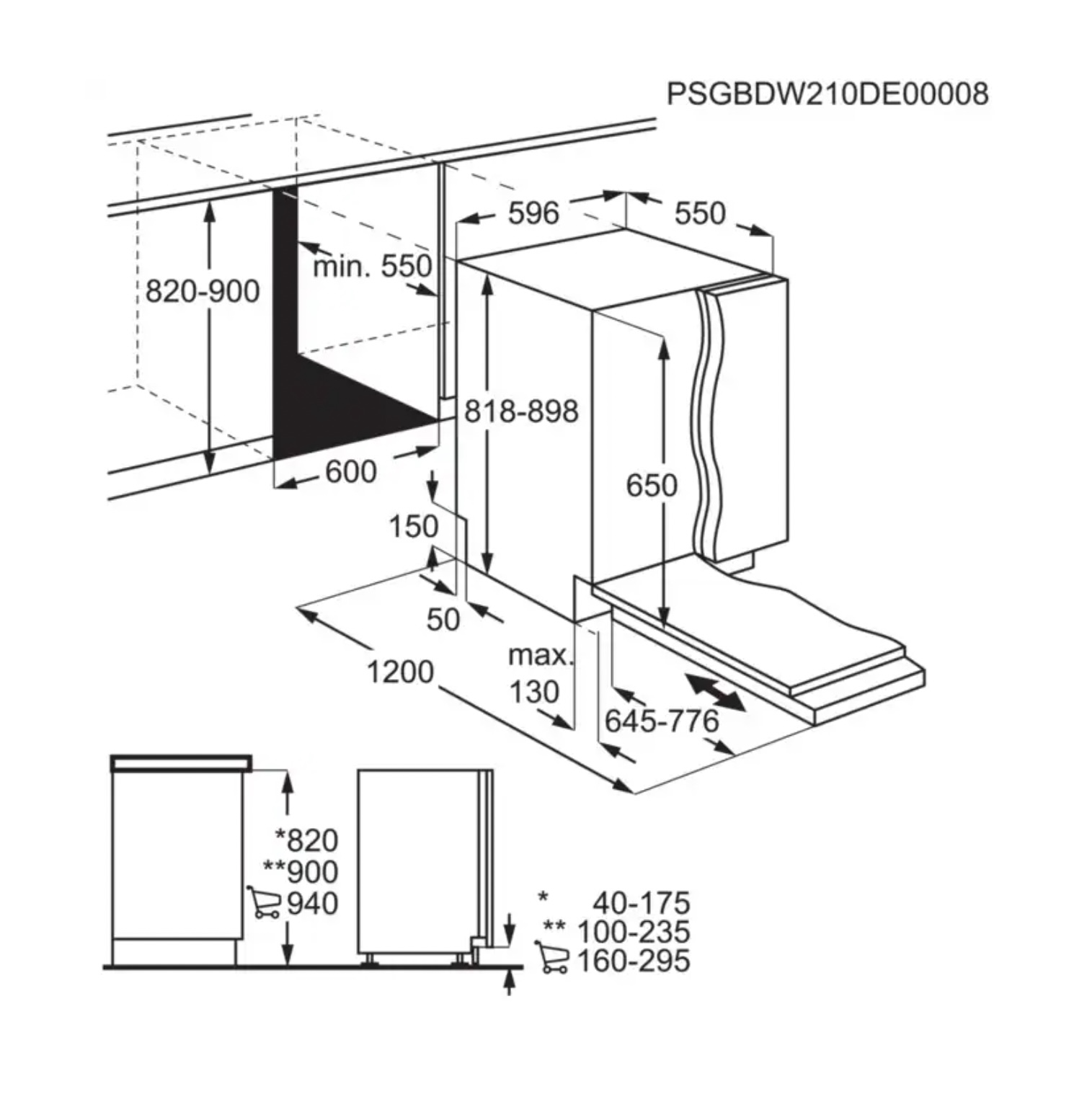 | minimum frontpaneel: | 645 mm |