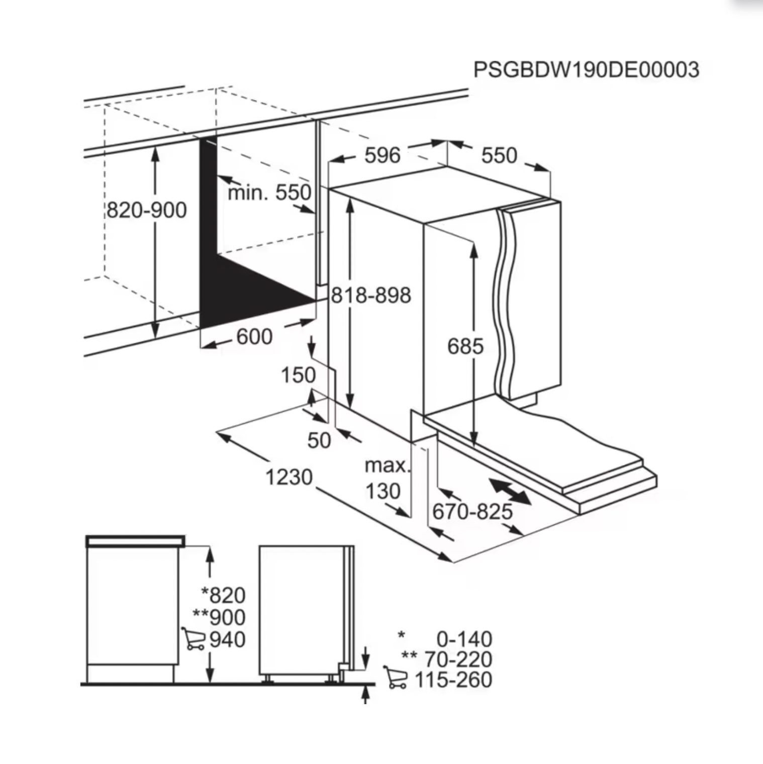 | minimum frontpaneel: | 670 mm |
