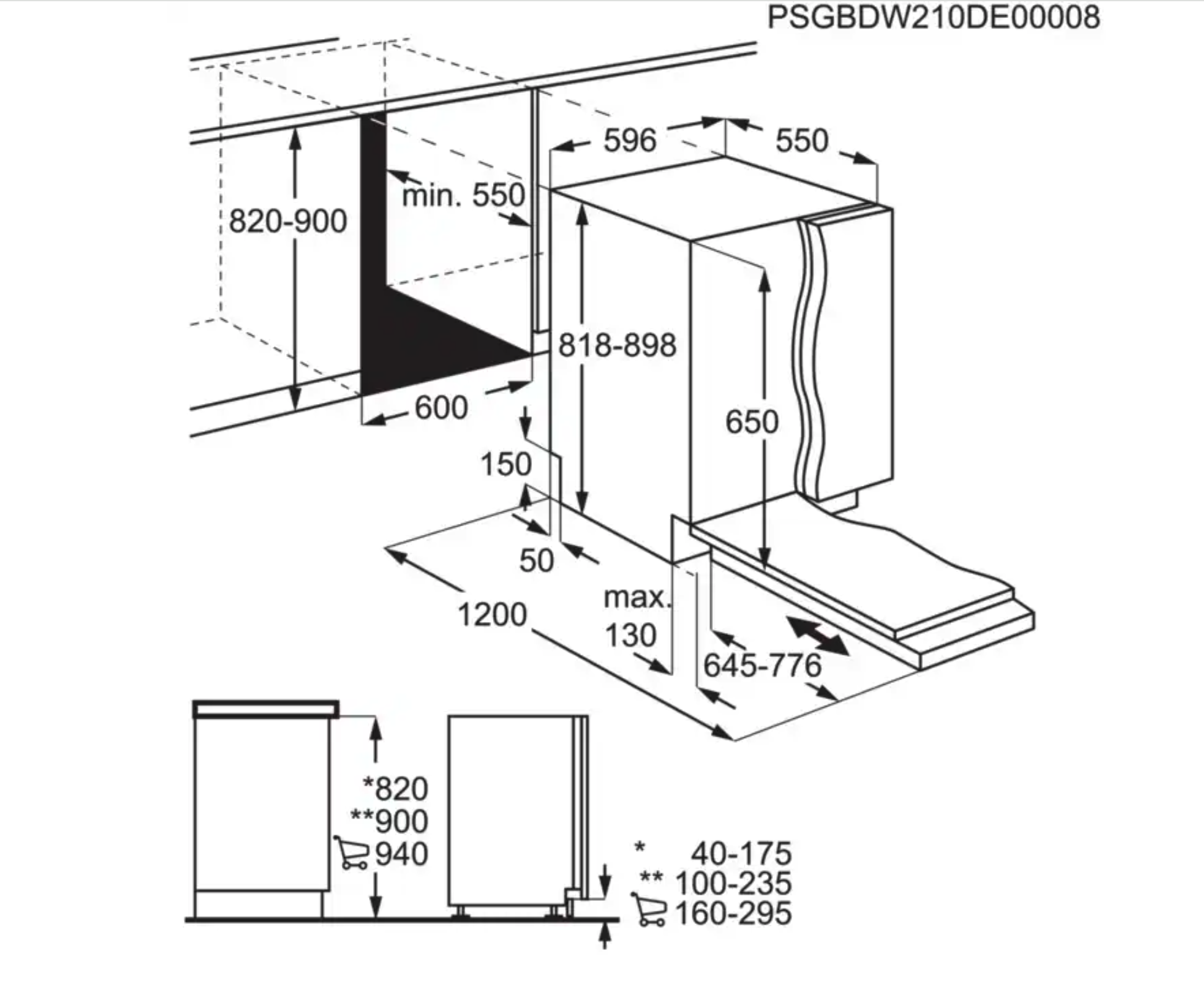 | minimum frontpaneel: | 645 mm |