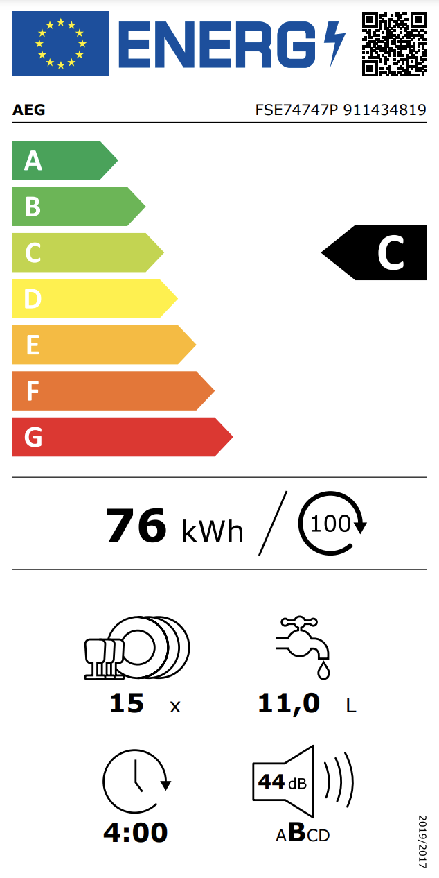 Productinformatie "AEG FSE74747P 7000 vaatwasser volledig integreerbaar"