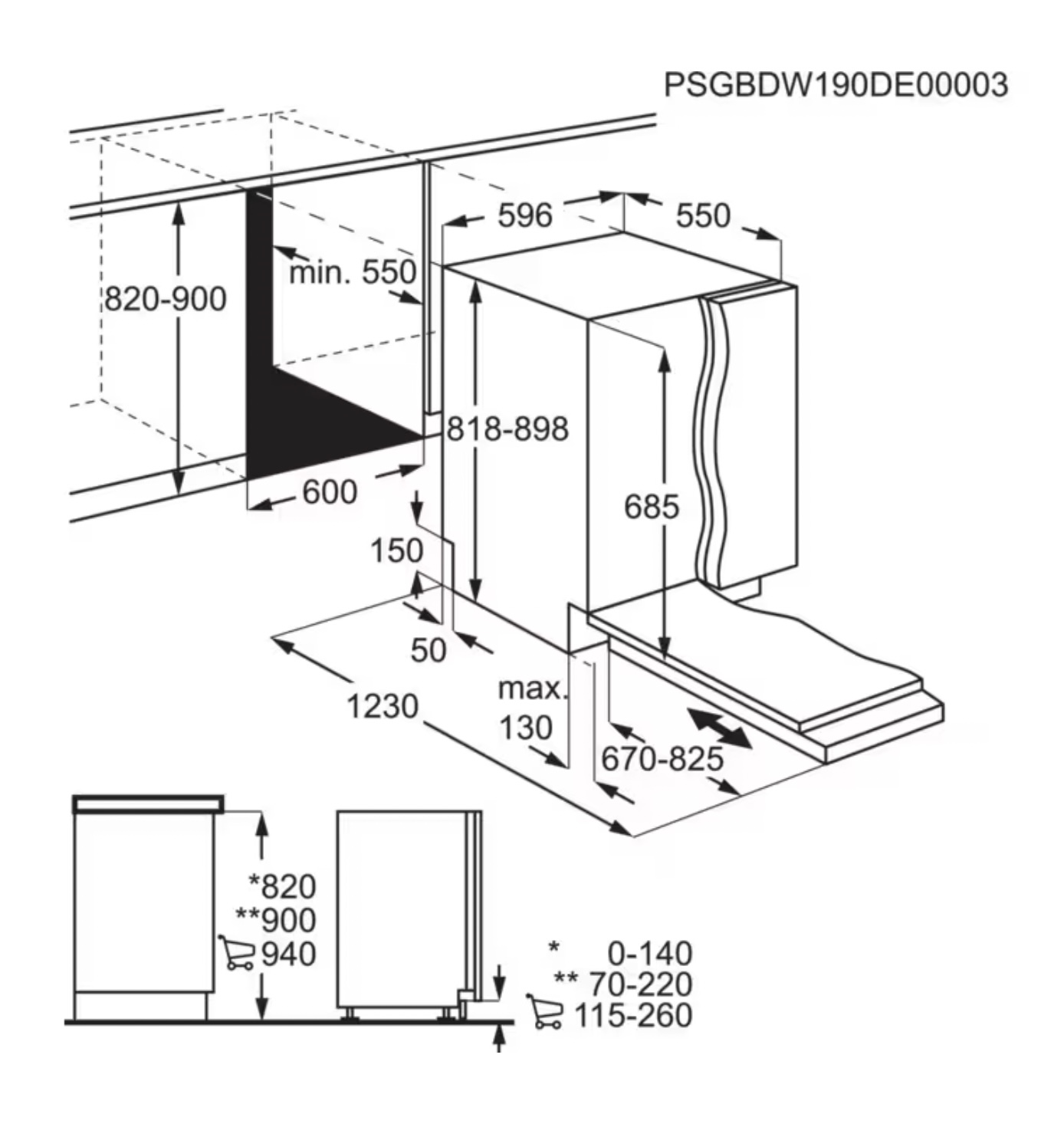| minimum frontpaneel: | 670 mm |