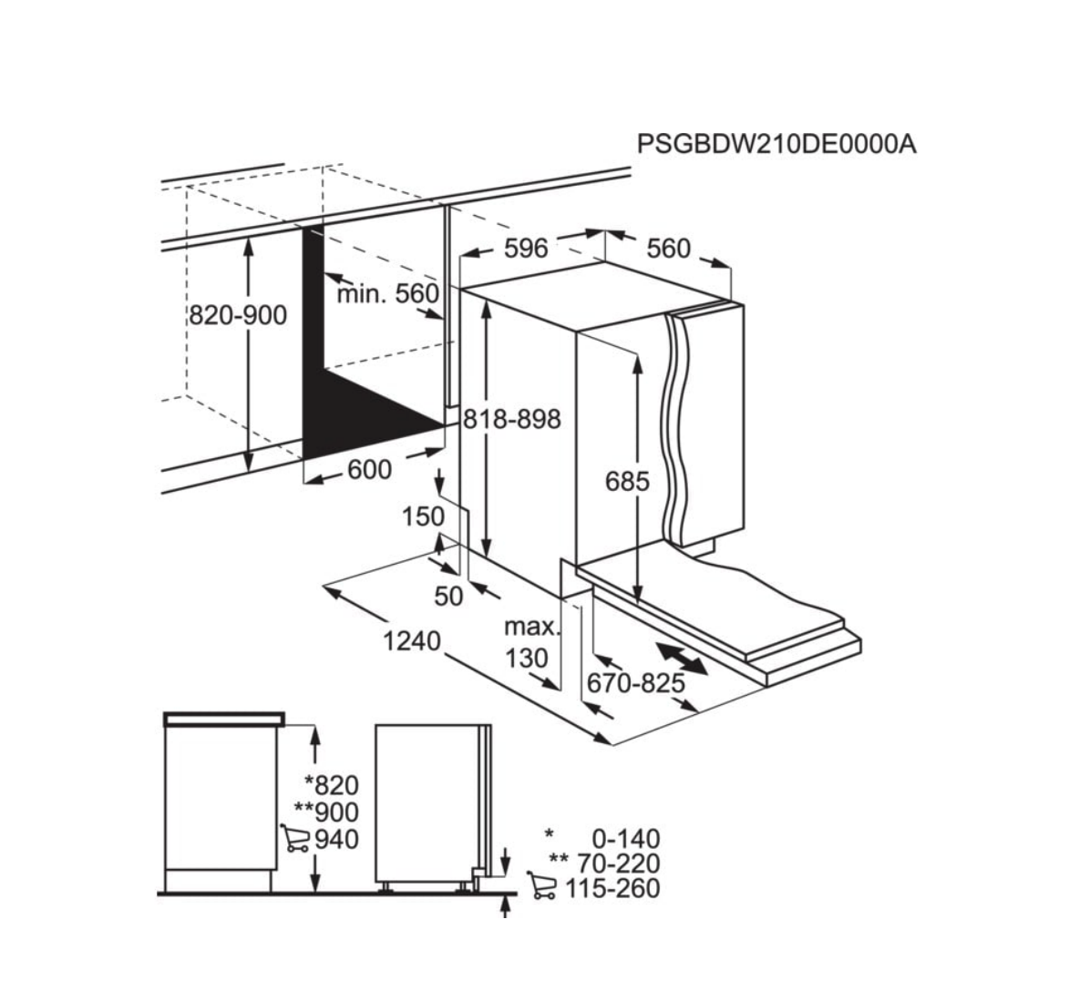 | minimum frontpaneel: | 670 mm |