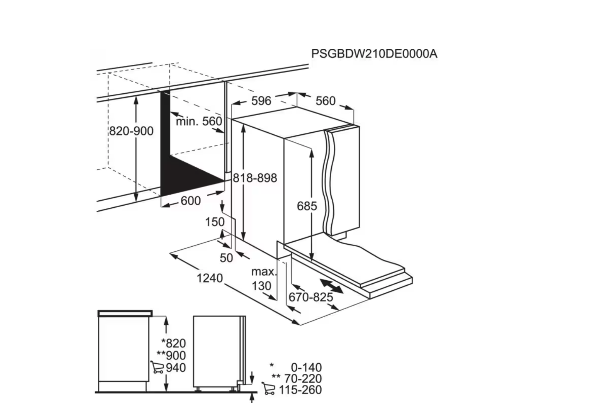 | minimum frontpaneel: | 670 mm |