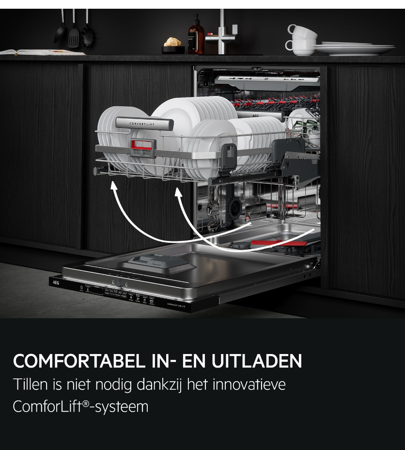 ComfortLift®: de onderste korf komt vlot omhoog voor makkelijk in- en uitladen