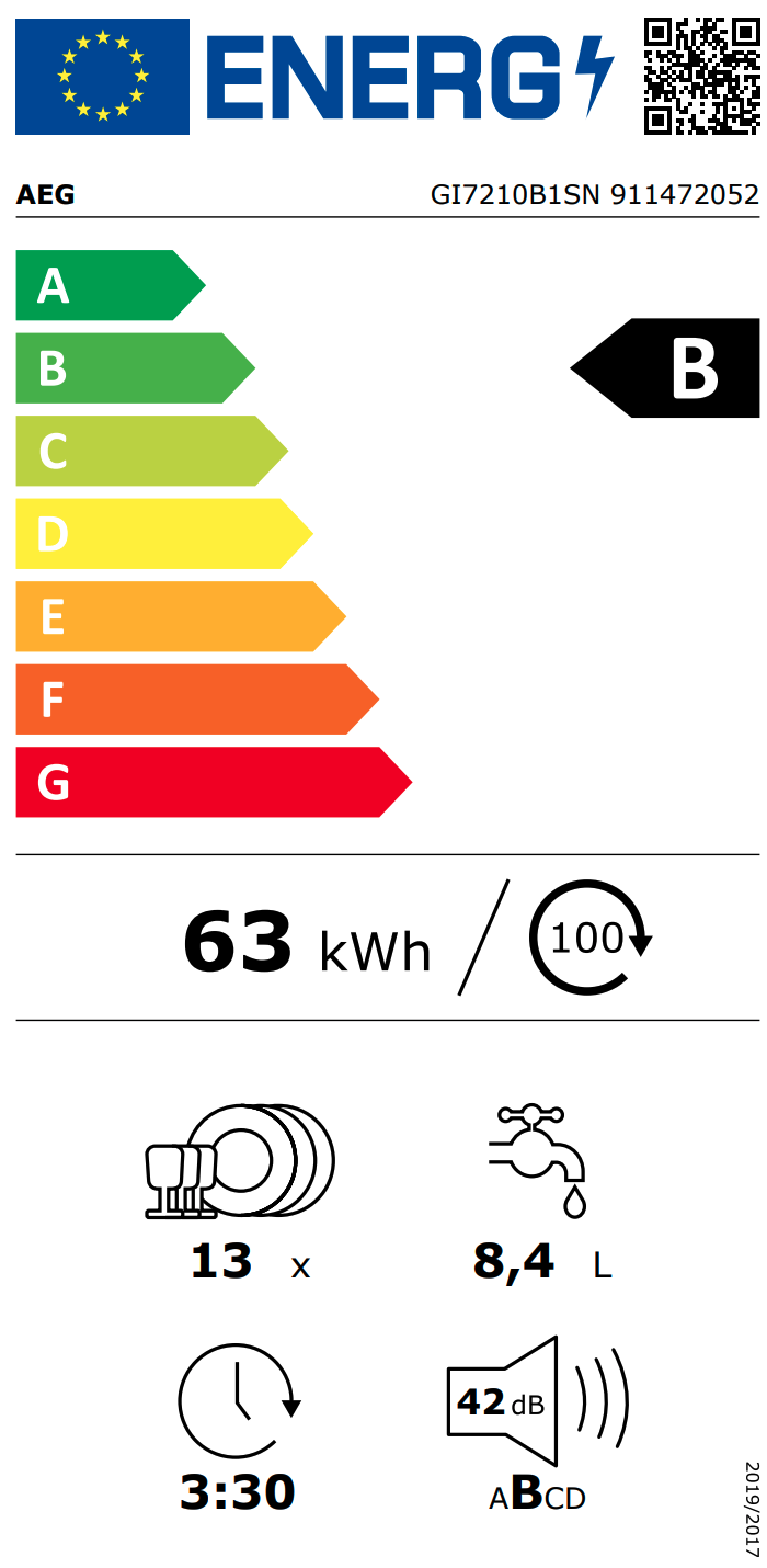 Productinformatie "AEG GI7210B1SN 7000 vaatwasser volledig integreerbaar"