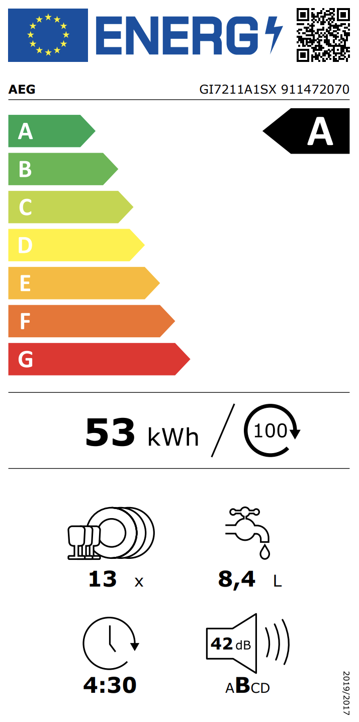 Productinformatie "AEG GI7211A1SX 7000 vaatwasser volledig integreerbaar"