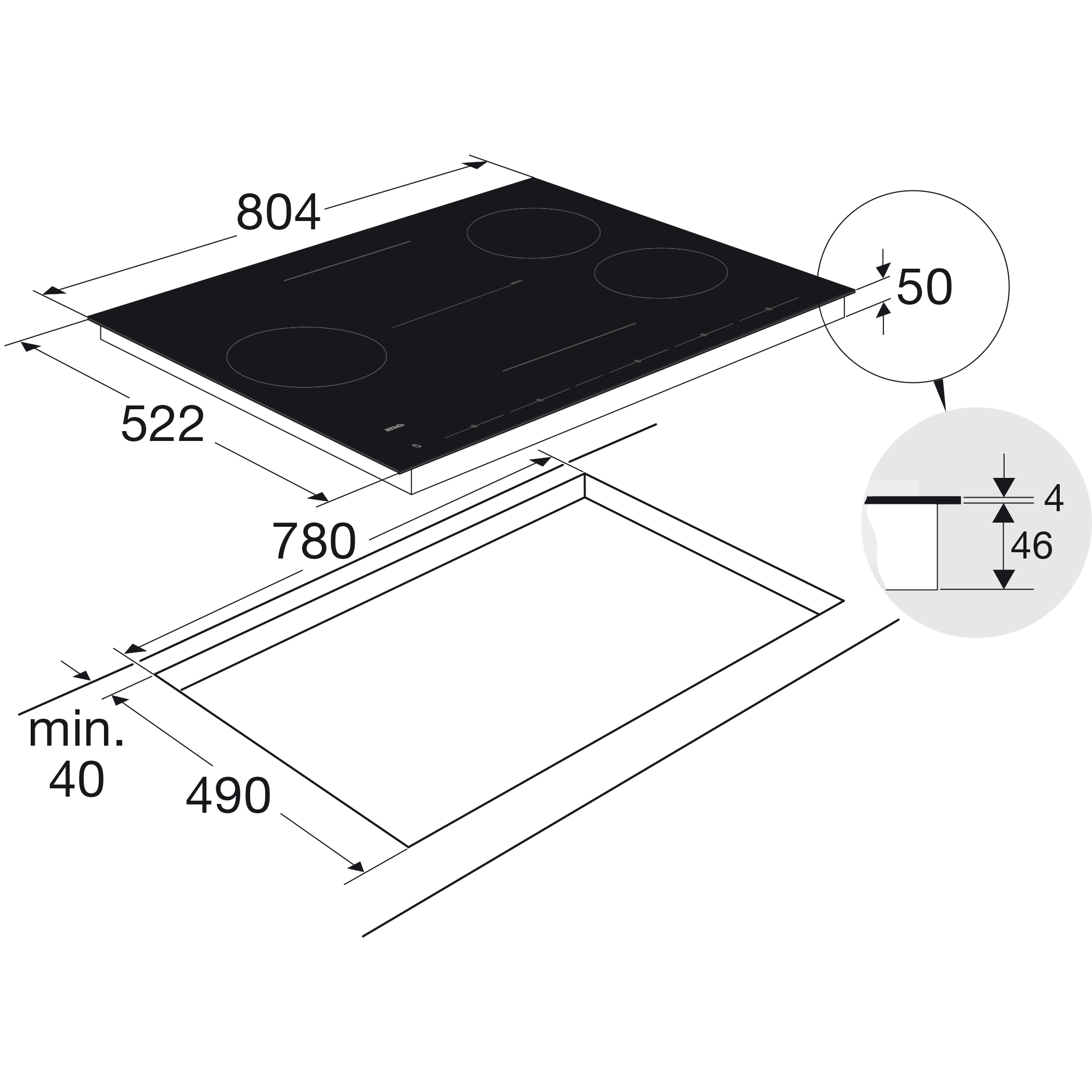- verlichting en standen te bedienen via inductiekookplaat