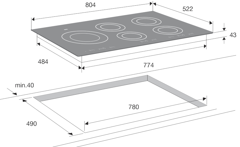 vitro-keramisch glas (slijt- en krasvast) met RVS zijprofielen