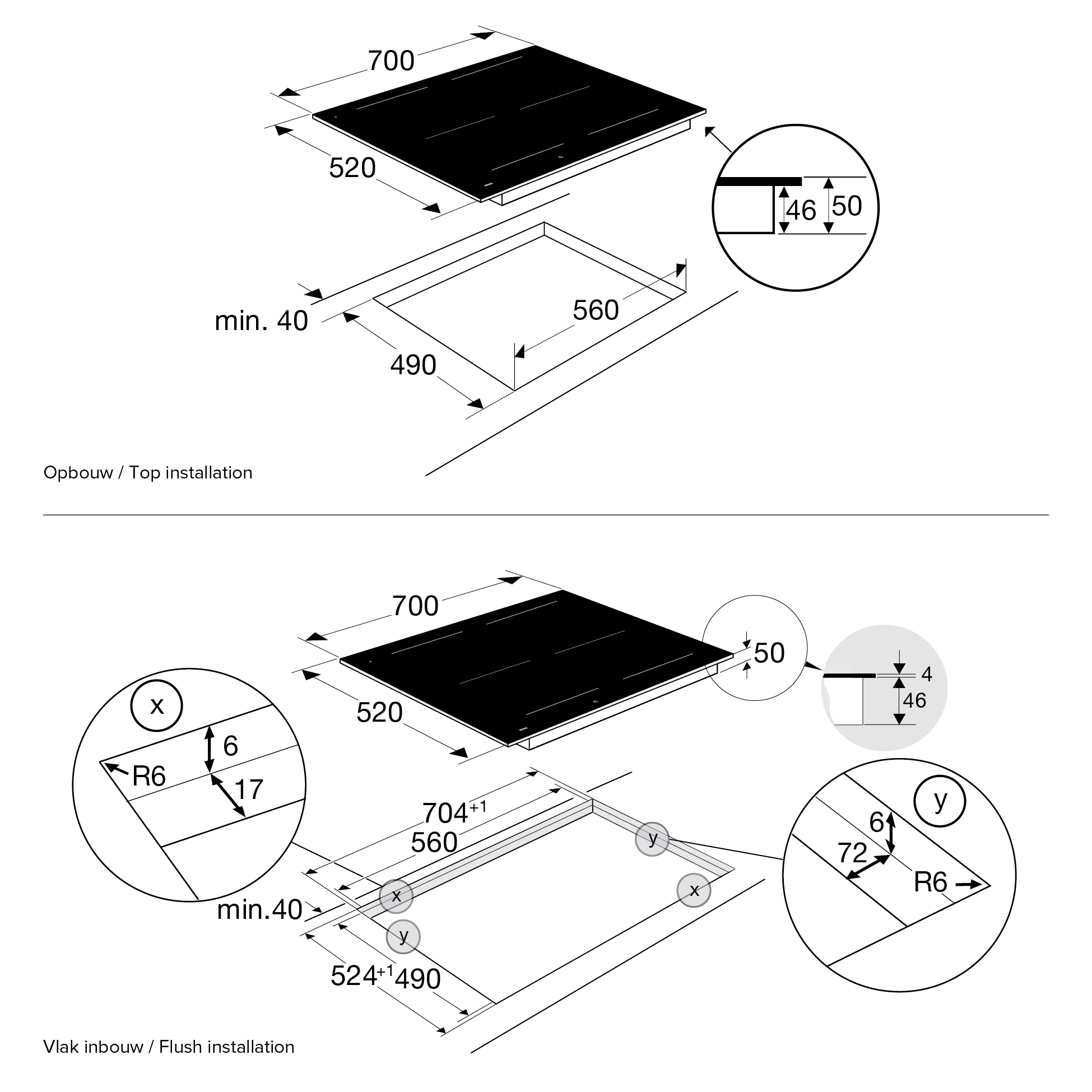 opbouw of vlakinbouwbaar mogelijk