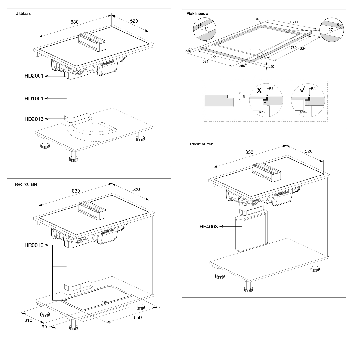 instelbare setting voor afzuiging: vrijuitblazend, recirculatie op
