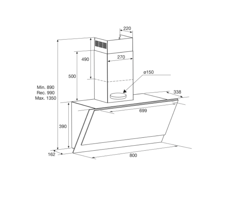 Productinformatie "ATAG WS8012DM headfree dampkap - 80cm"