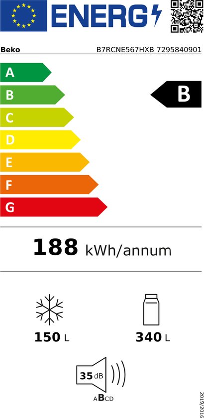 Productinformatie "BEKO B7RCNE567HXB vrijstaande koel-/vriescombinatie - 192cm"