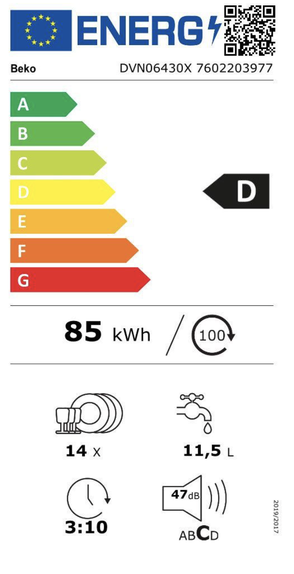 Energieverbruik 100 afwasbeurten Kwh : 85