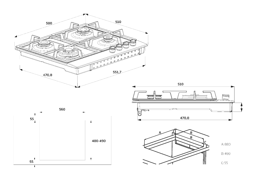 Productinformatie "BEKO HIAW64225SX gaskookplaat - 60cm"