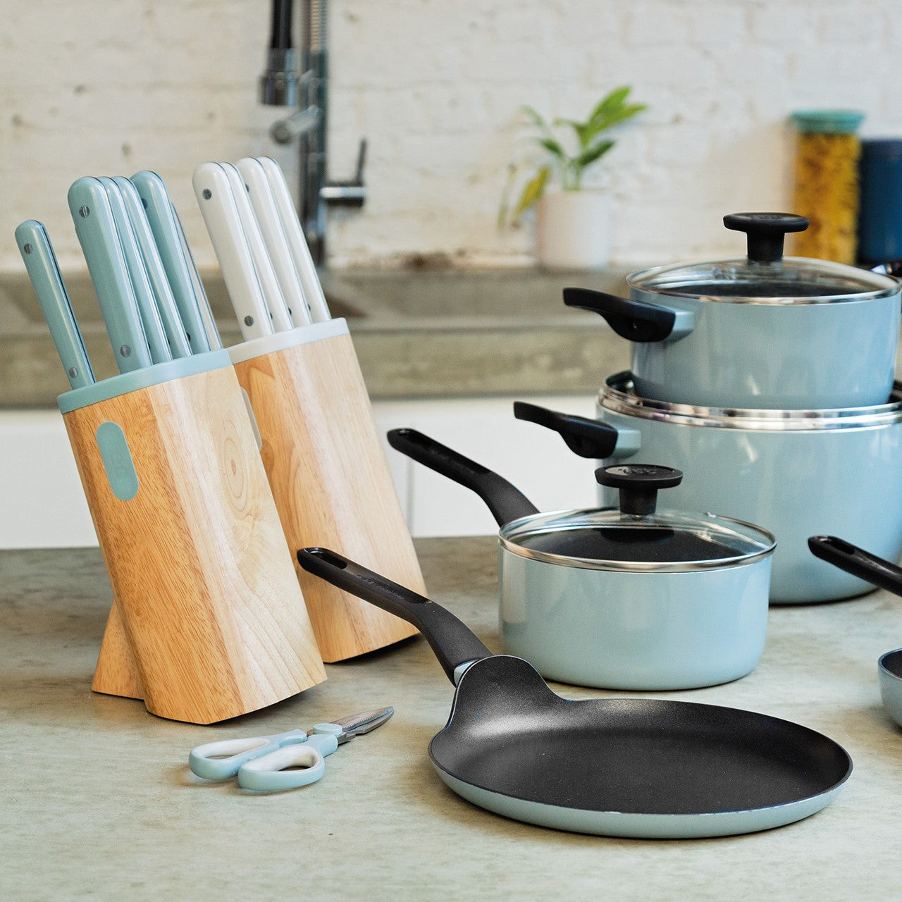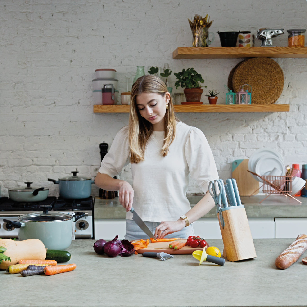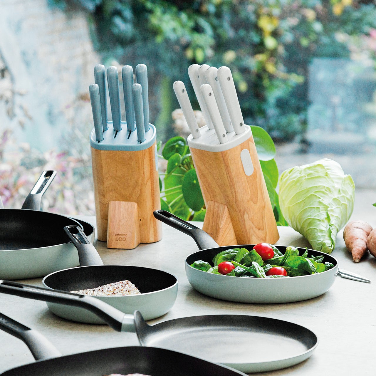 Deze 7-delige messenblok is de subtiele oplossing om wat kleur toe te voegen aan je keuken! De messenblok bevat een veelzijdig messenassortiment zoals een schilmesje, universeel mes, vleesmes, broodmes, koksmes en santokumes. In de mooi vormgegeven houten messenblok met glanzende topafwerking. De messleuven zijn zo ontworpen dat ze perfect passen op de bolster van het mes, zo ben je 100% zeker van een veilige messenopberging. De geïntegreerde magneet aan de zijkant zorgt voor een gemakkelijke opslag van uw schaar of andere magnetisch keukengerei