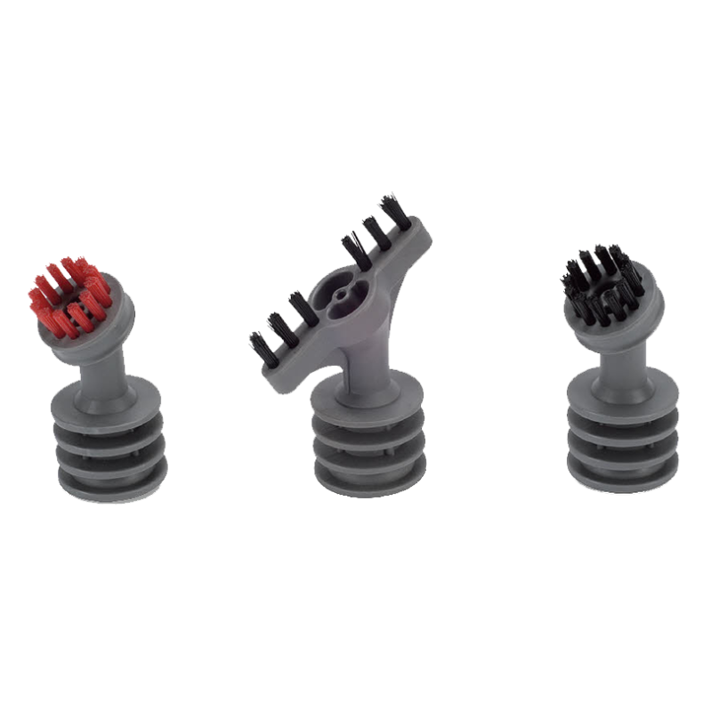 De 2 ronde schrobborstels zijn perfect voor het verwijderen van hardnekkig vuil op moeilijk te bereiken plaatsen. Ze hebben een kleurcode voor specifiek gebruik: de rode borstel is voor badkamers en de zwarte borstel is voor keukens. Het voegenaccessoire is vooral handig voor het schrobben van kleine naden en spleten.