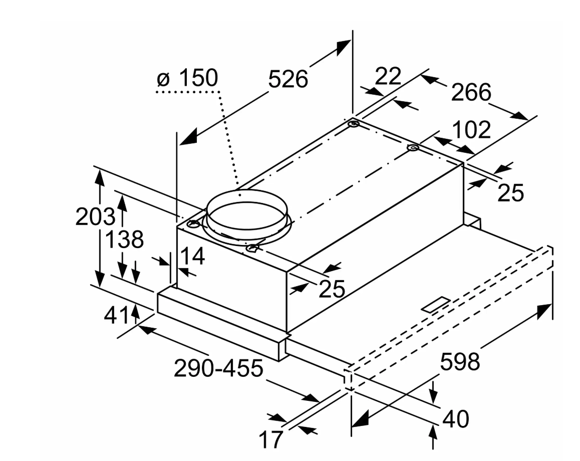 - Telescopische dampkap: inbouwbaar in een hangkast van 60 cm