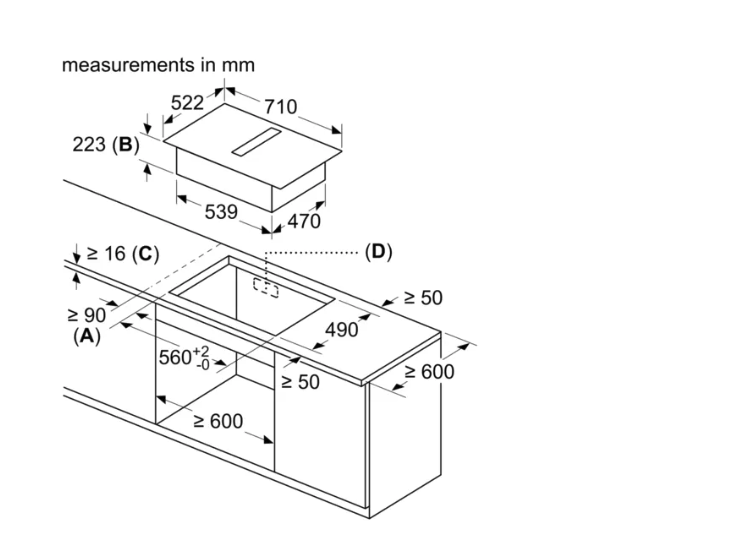 Inbouwafmetingen (HxBxD) : 223 x 560 x (490 - 490)