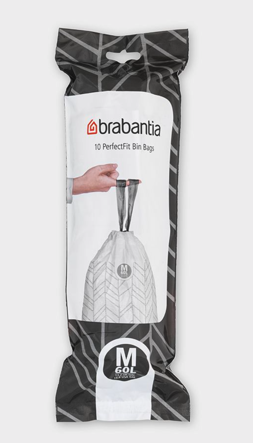 Precies wat je nodig hebt - 10 vuilniszakken die perfect passen in je 60 liter Brabantia afvalemmer (code M).