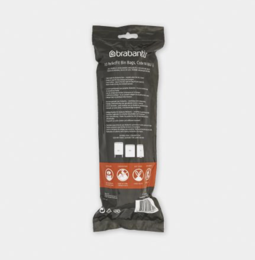 Brabantia PerfectFit vuilniszakken passen perfect in je Brabantia prullenbak, en in je drukke leven. Dus zijn ze extra sterk en hebben ze een dito trekbandsluiting! Trek er de zak mee uit de bak en knoop 'm ermee dicht. Weet je niet zeker welke maat je nodig hebt, kijk dan naar de kleurcode aan de binnenkant van het deksel van je vuilnisbak. Geslaagde zakken, perfect passend bij je Brabantia afvalbak.