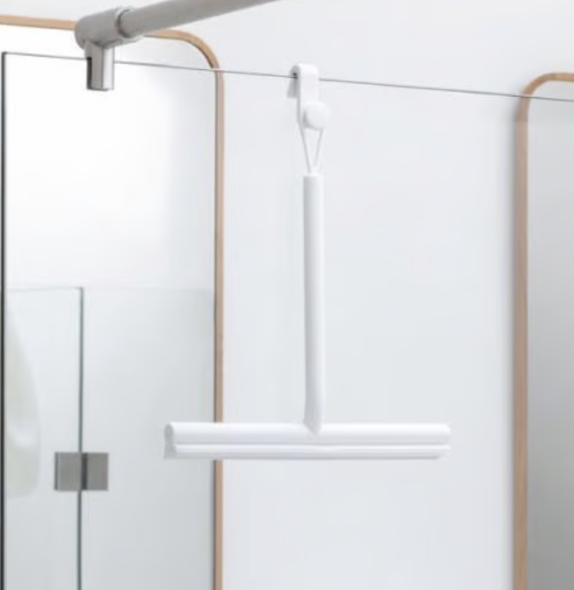 Makkelijk ophangen - douchewisser met ophangoog, bijpassende deurhaak inclusief.