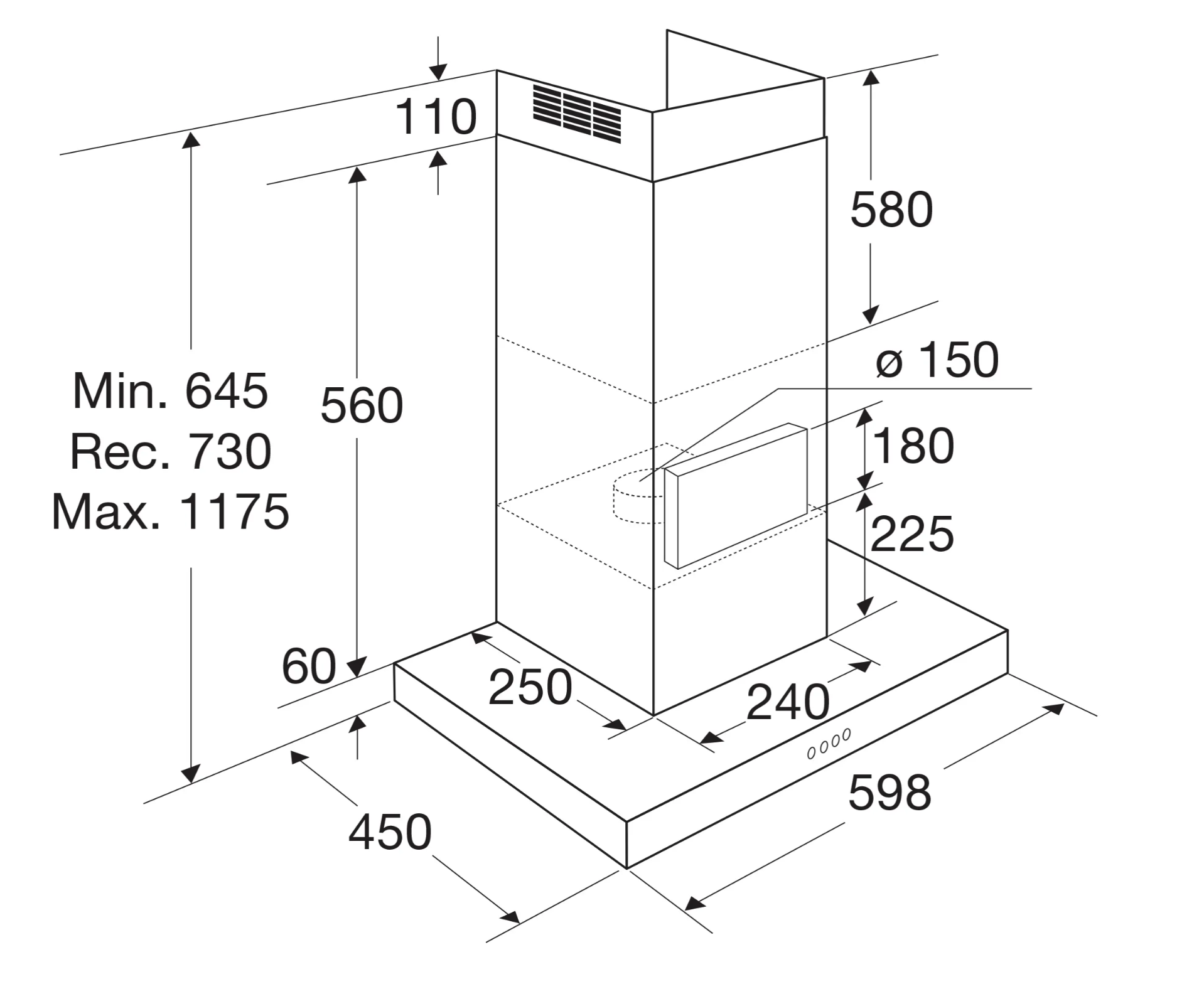 afzuigcapaciteit (min.-max.) 260 - 620 m³/h