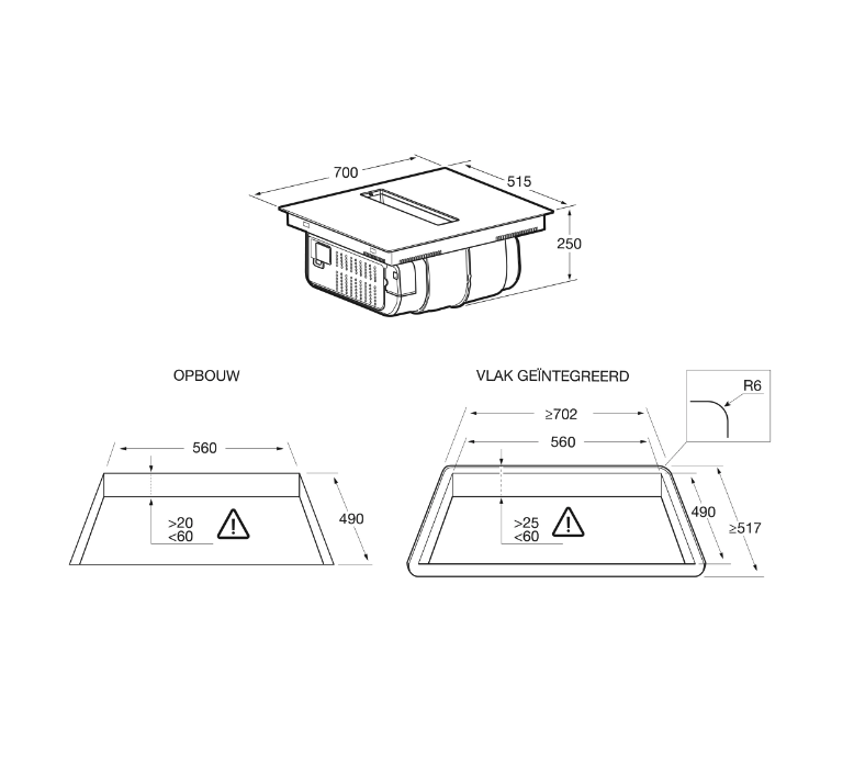 inbouwmaten (hxbxd) 224 x 560 x 490 mm