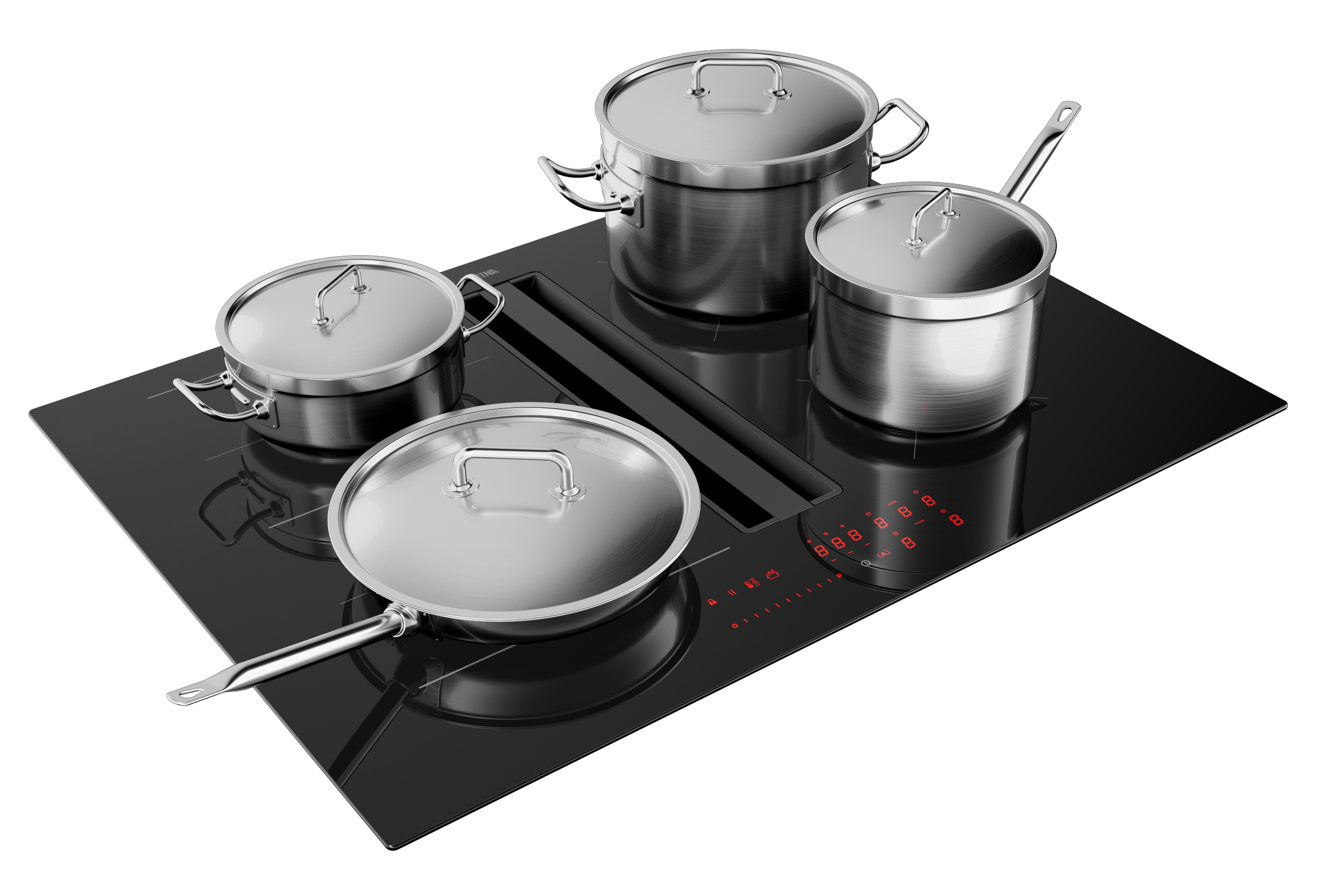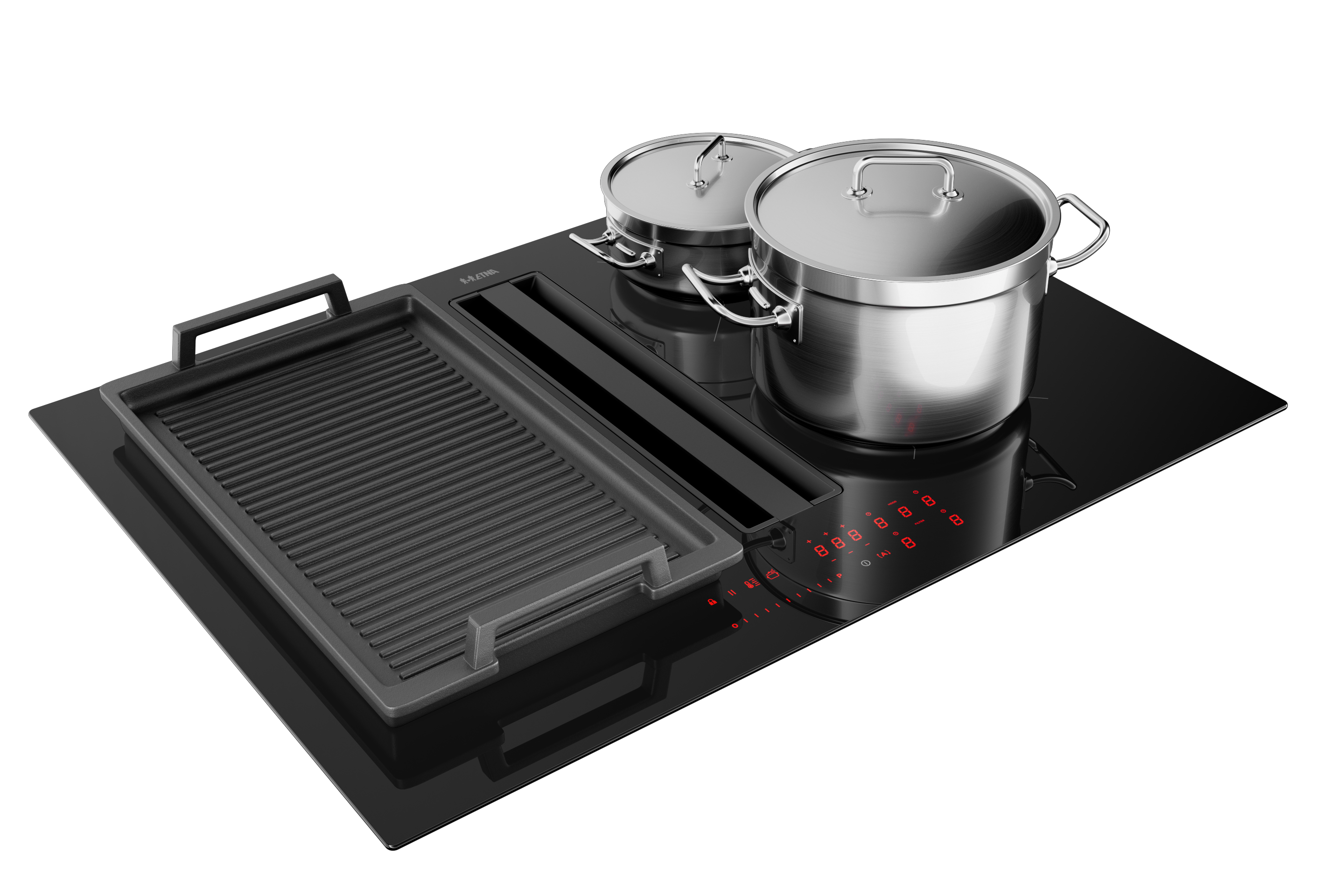 octazones linksvoor en -achter koppelbaar om 1 grote kookzone te creëren voor een grillplaat of vispan
