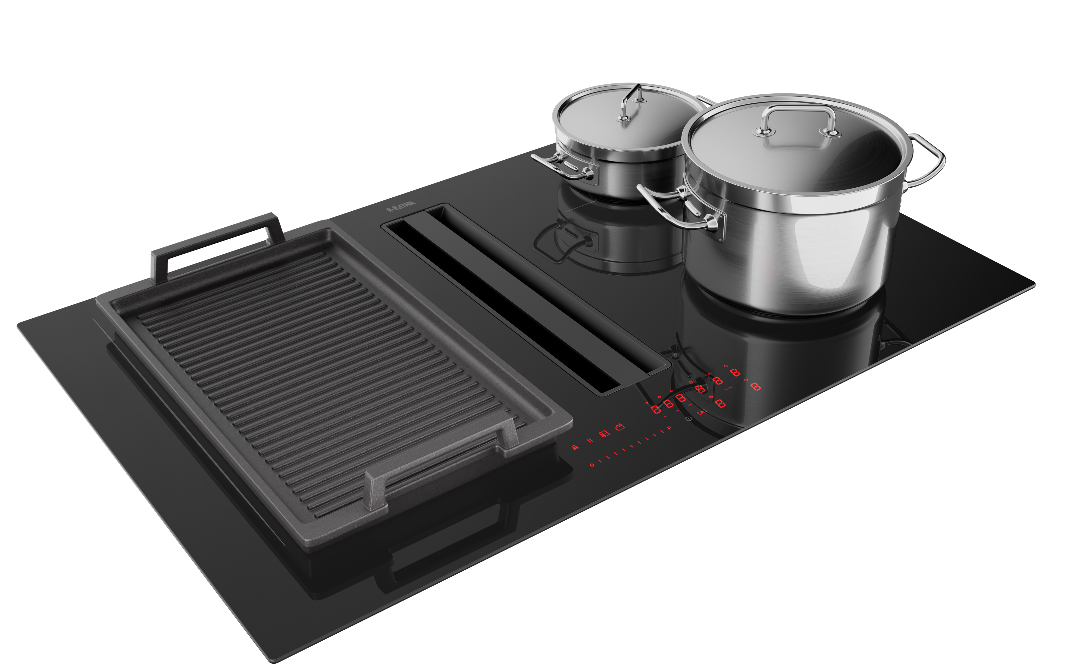 octazones linksvoor en -achter koppelbaar om 1 grote kookzone te creëren voor een grillplaat of vispan