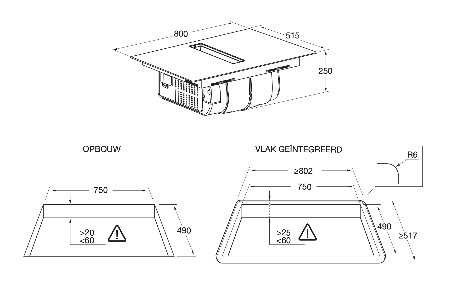 inbouwmaten (hxbxd) 224 x 750 x 490 mm