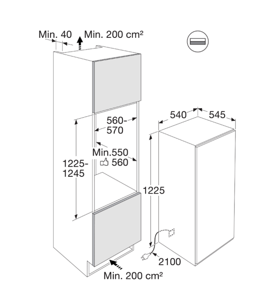 buitenmaten (hxbxd) 1225 x 540 x 545 mm