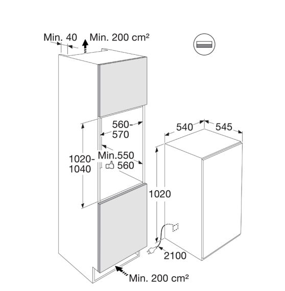 buitenmaten (hxbxd) 1020 x 540 x 545 mm