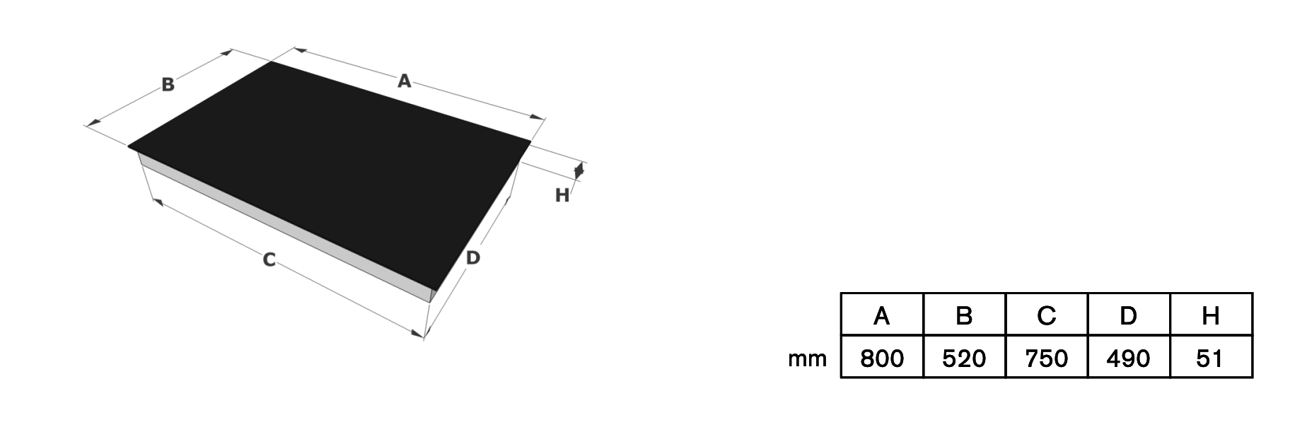 Product afmetingen (BxDxH) (mm): 800 x 520 x 51
