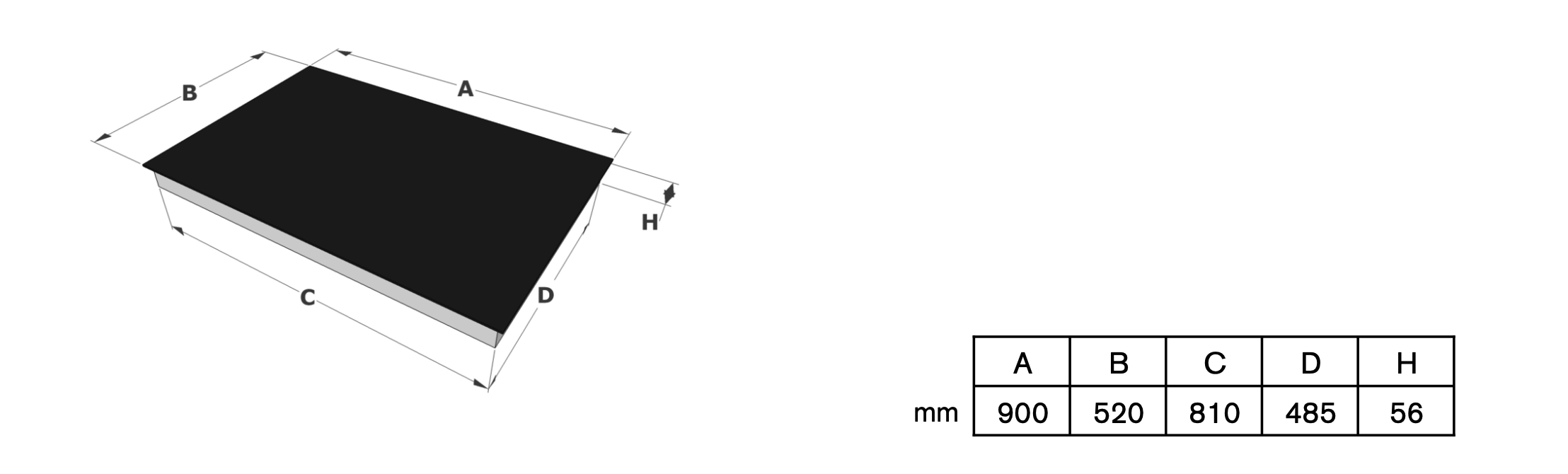 Product afmetingen (BxDxH) (mm): 900 x 520 x 56
