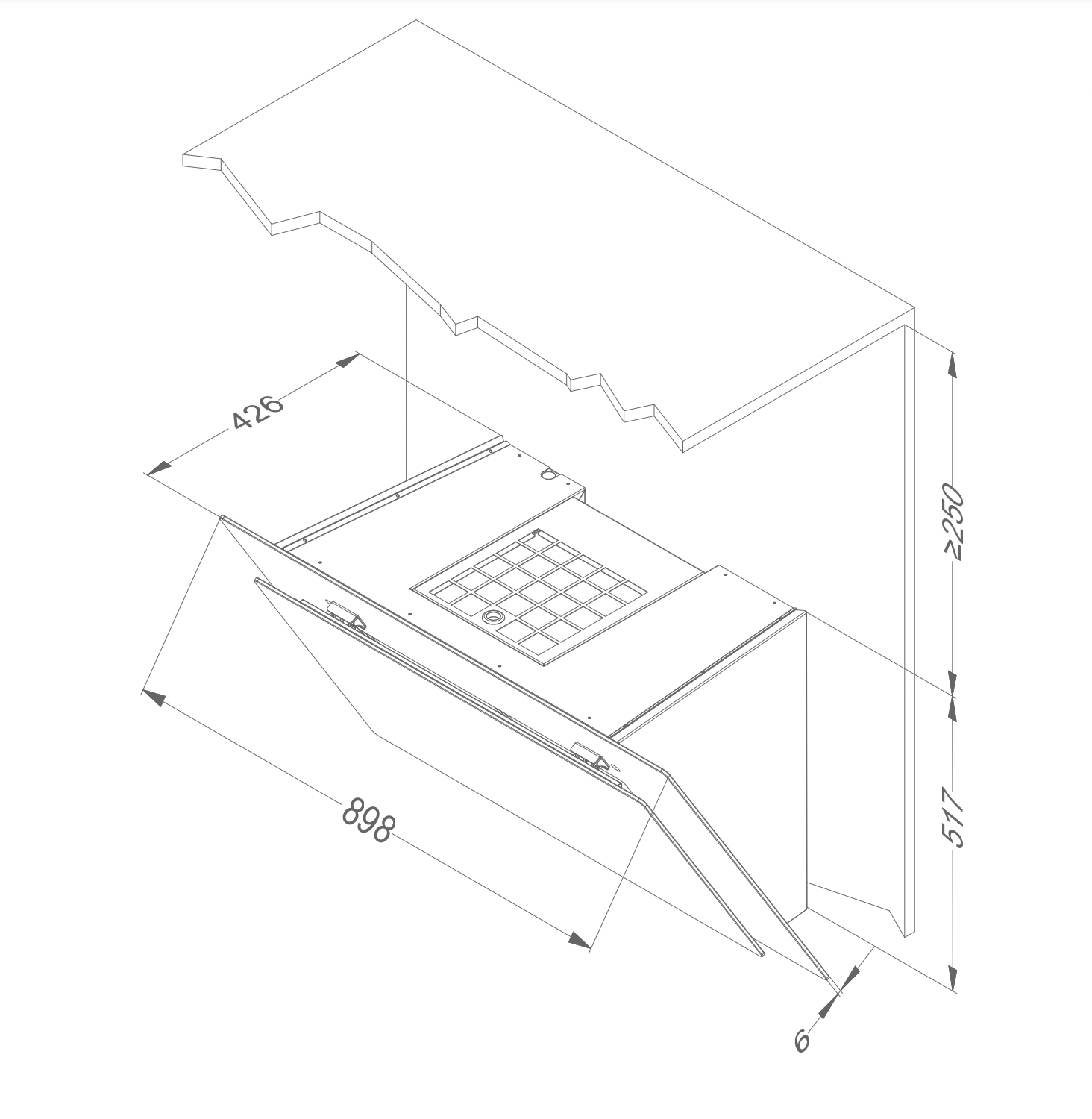 Product afmetingen met recirculatie (BxDxHmin-Hmax) (mm) 898 x 426 x 517 - 517