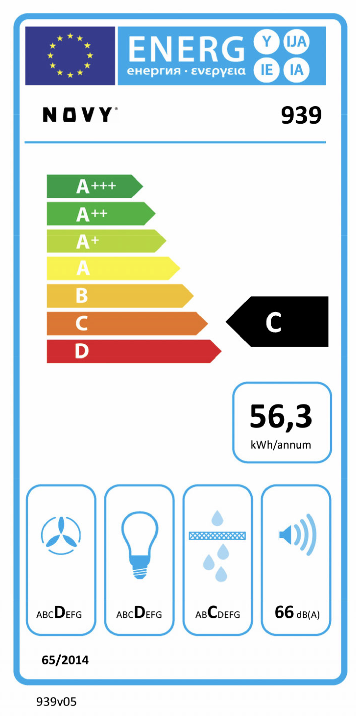 Vetfilterefficiëntie klasse (GFEdampkap): C