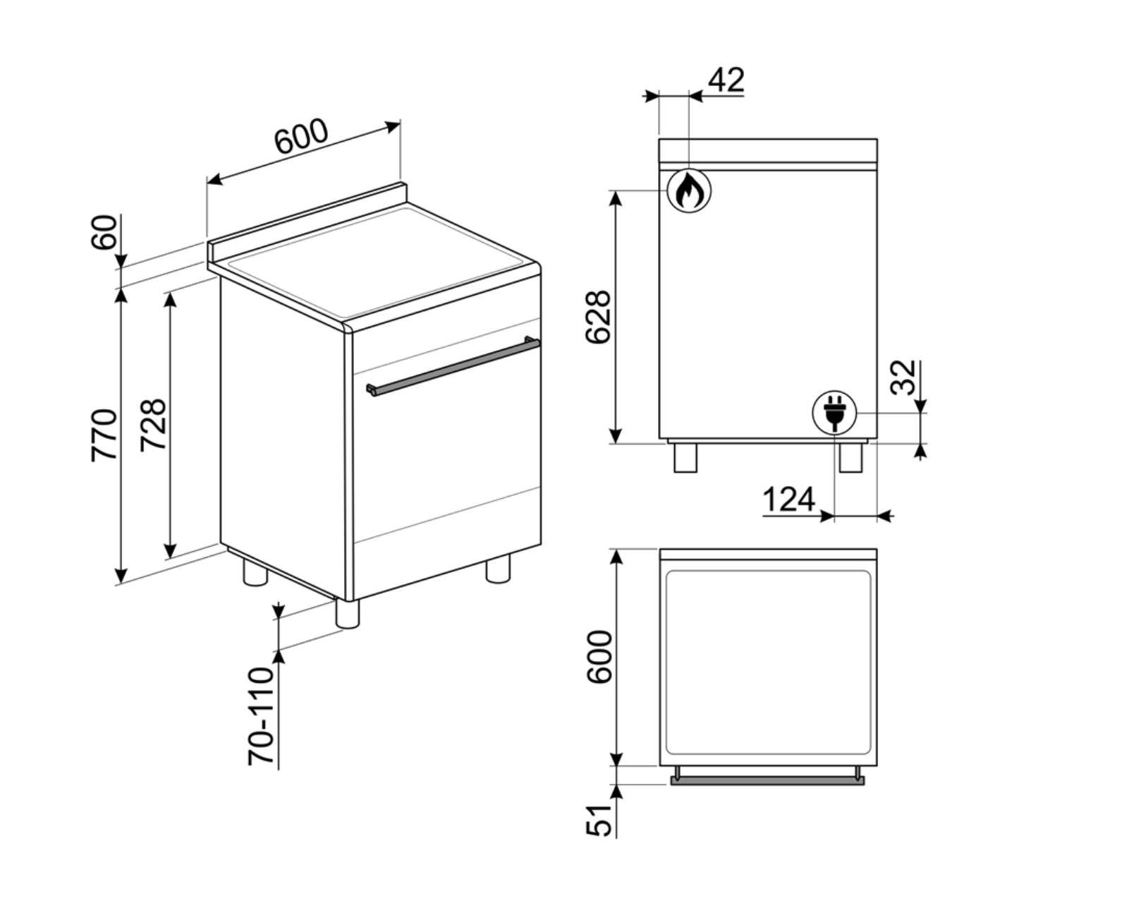 Cooker size 60x60 cm