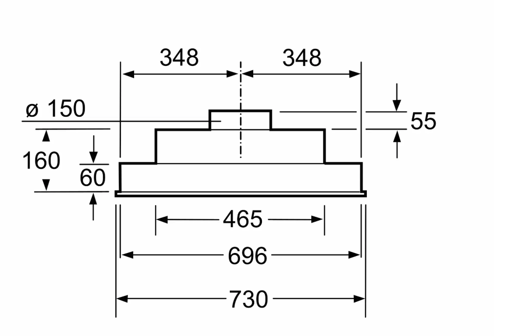 - Inbouwafmetingen (HxBxD): 215 x 700 x 350 mm