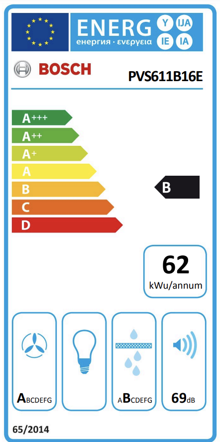 - Energieklasse volgens EU-norm nr. 65/2014: B (op een schaal van