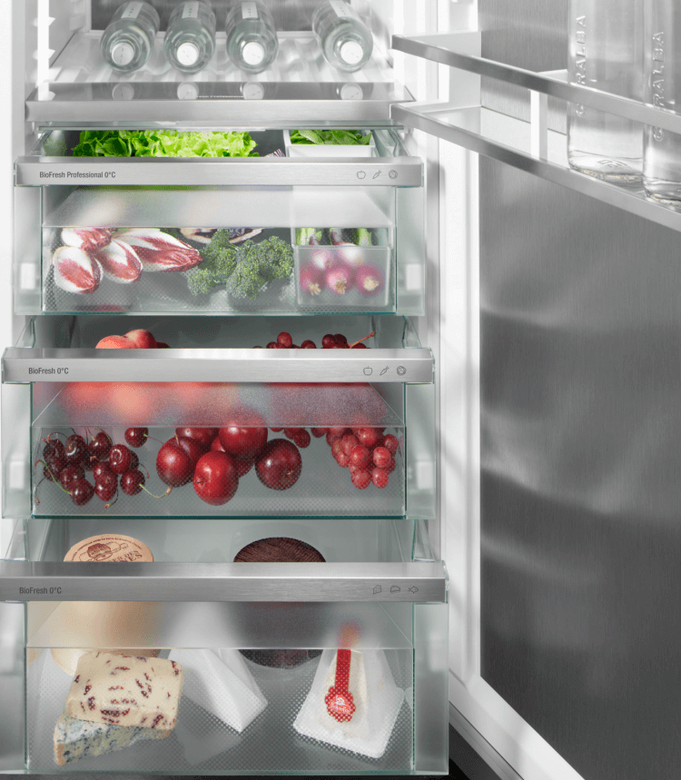Het SmartSteel interieur met LightTower en Ambient verlichting wordt optimaal verlicht. In de BioFresh Professional laden op